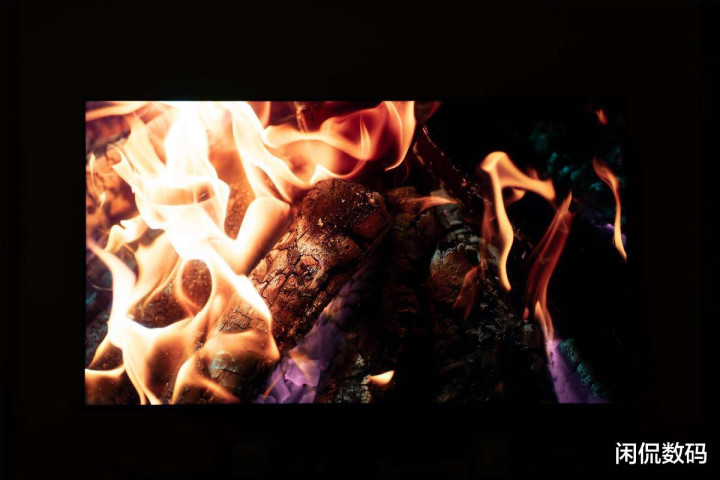 具体到硬件参数,85英寸版本拥有3500个 Mini LED物理背光分区,瞬时峰值亮度可达5200nit,稳定亮度也达到了3800nit。在实际显示火焰这类高对比画面时,普通电视往往难以兼顾高亮与深暗,火焰亮不起来,木炭暗不下去,画面显得平淡。而海信E7Q凭借出色的控光能力,配合超画质U+MiniLED光晕控制系统,实现了亮暗分明、通透自然的画面表现。